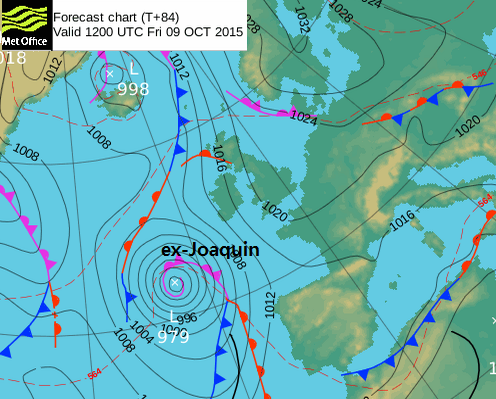 So at the moment, Joaquin's effects look limited to whole of Ireland, Wales and W England, but still with low confidence that it will actually spoil the weekend for these parts of the UK. Further east looks more settled.