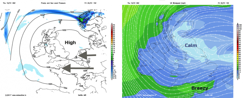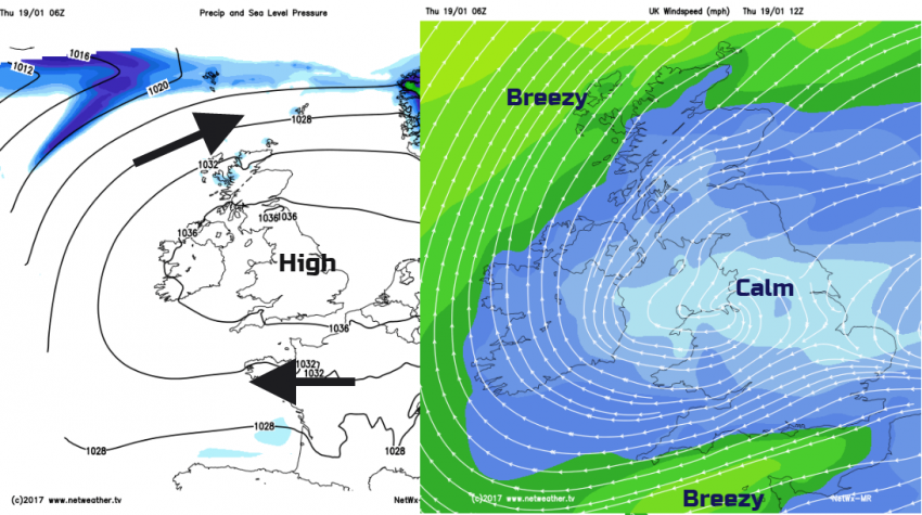 The same high pressure from last week is now contributing to high pollution levels, with VERY HIGH Daily Air Quality Index being scored in London and East Anglia on Tuesday. The still air, the fog and local pollution sources (particulates) are all resulting in the poor air quality. The Daily Air Quality Index tells us about levels of air pollution and provides recommended actions and health advice. It could be used like the Pollen index or UV index.
