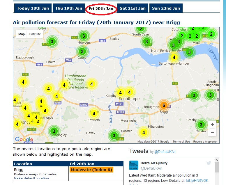 The High pressure is shifting a little bit for the end of the working week. The lightest winds remain over eastern and NE England, so levels inland from the Humber remain at moderate to high, with local sources the cause.