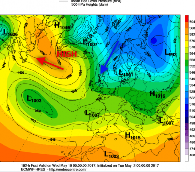 Looking further ahead into the second week of May and beyond and there is some increasing consistency within the forecast models, especially the ENS for a more unsettled and cooler pattern to develop. In what could well be quite a change in weather when compared with the opening week of May, the signals at the moment point towards a reduction in GPH across the British Isles and also with the potential development of an N or NE’ly flow too. Using the 00Z ECMWF as an example, the current thinking is the high pressure will begin to retrogress (move westwards) towards Greenland and perhaps parts of NE Canada. As this process takes place, then there is the potential opportunity of a drop in temperatures from the N and NE, with much cooler, if not quite cold conditions developing. Something thing to keep an eye out for within the weather models moving forward, from around the 9th and 10th onwards.