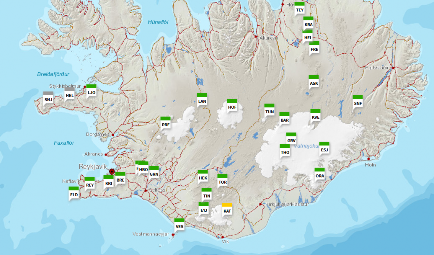 And a similar observation map is available for the volcanoes alongside their aviation code colour, Katla being on a Yellow alert, prompting the UK headlines at the end of July.