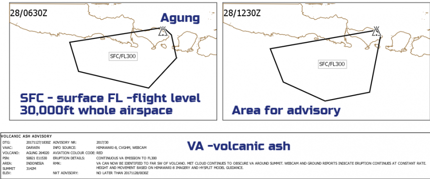 Globally there are nine volcanic ash advisory centres (VAACs) that detect, track and forecast the movement of volcanic ash clouds and provide advice to meteorological offices in their area of responsibility. The VAACs are located in the USA, Argentina, UK, Australia, Japan, France, Canada and New Zealand. The Bureau’s VAAC (known as VAAC Darwin) is responsible for an area that includes the volcanically active regions of Indonesia, and have issuing advice already.