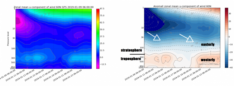 Recent (06z) GFS shows troposphere at 60N not seeing winds reversal like higher up in the stratosphere - to initiate high latitude blocking before end of the month