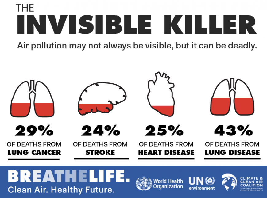 The World Health Organisation, WHO, regard air pollution as the top killer in the world. It is not just an urban problem. Here in the UK, it causes varying degrees of health issues from nose and throat irritation, to childhood asthma, strokes and heart disease. Air pollution affects mortality equivalent to tens of thousands of people dying prematurely in the UK every year (COMEAP). This invisible killer is a serious problem and increasing due to climate change at home and worldwide.