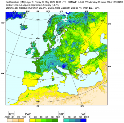 Across much of Iberia, away from the north, the ground is already dry following a dry winter. However, the rest of western and central Europe has moist soils, locally excessively wet and this looks set to continue into early June.