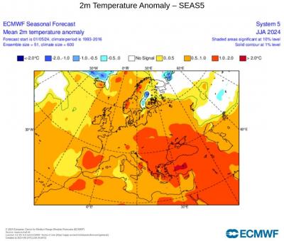 In summary, for all three summer months, there is a unanimous signal from all models for above average temperatures in most of the UK over June, July and August. The rainfall signal is more mixed and less clear, with generally no signal for wetter or drier, so on balance, average across all three months.